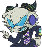 - Before being imprisoned, he didn't have a name. He gave himself "Grub" because of how often it was directed at him in terms of meals.- He's clingy and suffers from a very minor case of separation anxiety.- His tongue is long, at least a foot in length. In exchange, his tail is short.- His eye color is orange, and the whites are as bright as a halo. He wears his shades everywhere to protect everyone else's eyes.